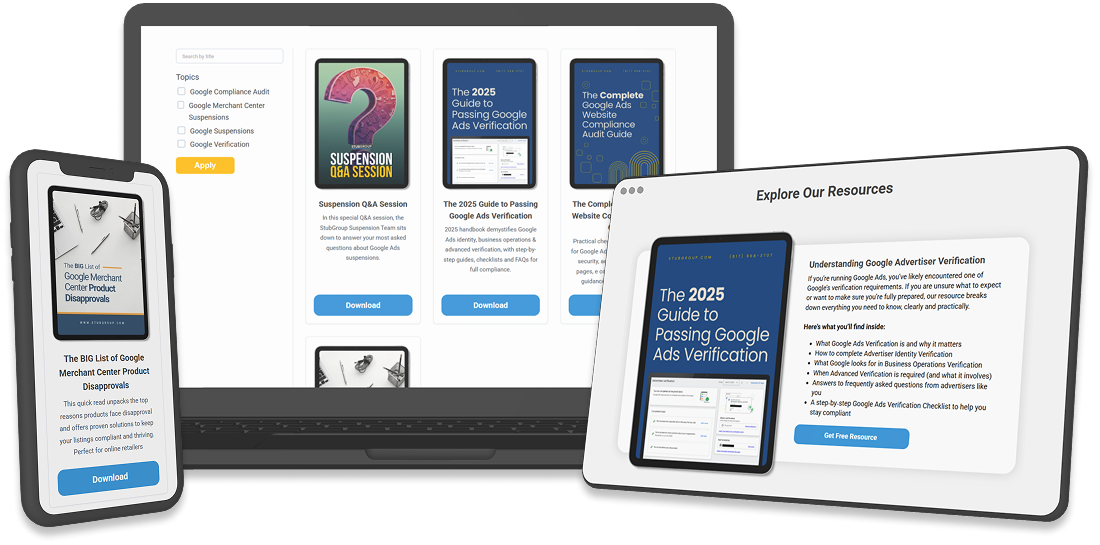 Discover the StubGroup Google Policy Center. Your hub for fixing suspensions, staying compliant, and keeping ads running smoothly.